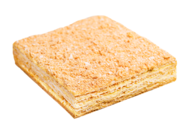 Tento lahodný dort se skládá ze tří korpusů z listového těsta ve tvaru čtverce. Napoleon tvoří vynikající máslový krém, přírodní extrakt a semínka z madagaskarského vanilkového lusku Bourbon.